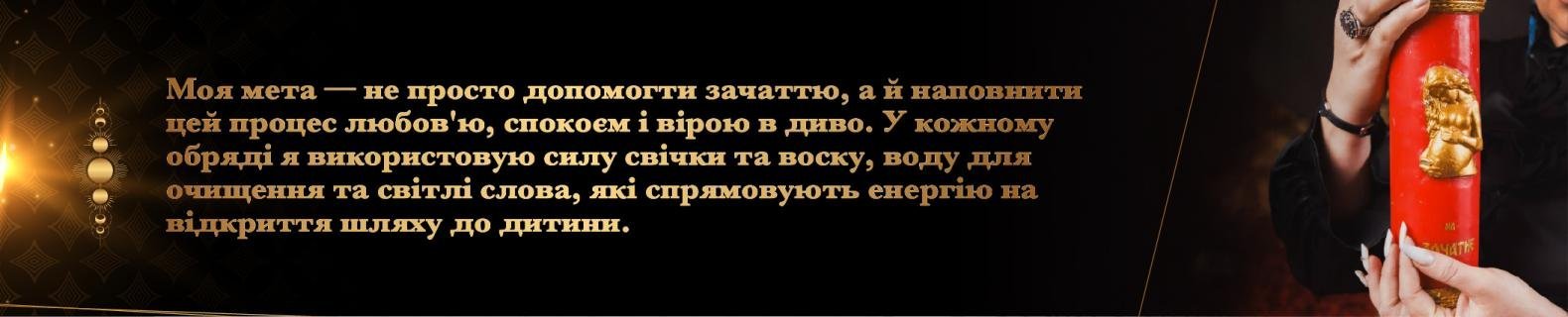 Я провожу мощные ритуалы, чтобы призвать удачу, оградить вас от темных сил и приблизить к исполнению сокровенных желаний.
